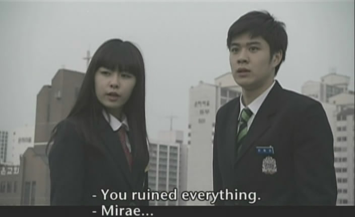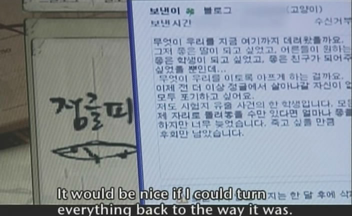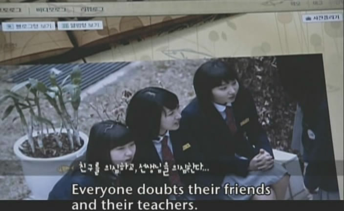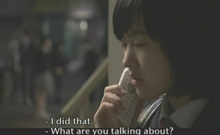 The girl (Eunsu) from earlier tells her friend about the cheating. She says their parents and teachers made them do that. Her friend hangs up on her.