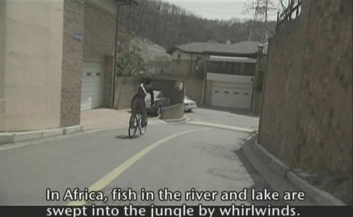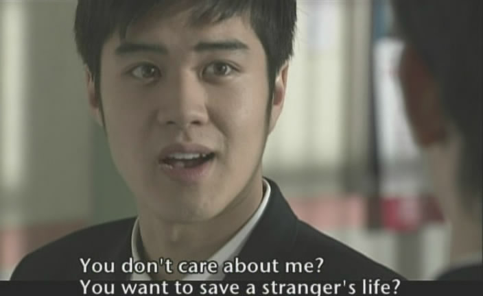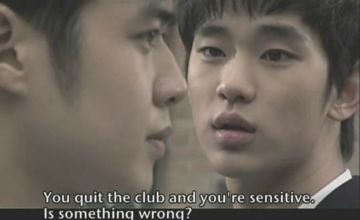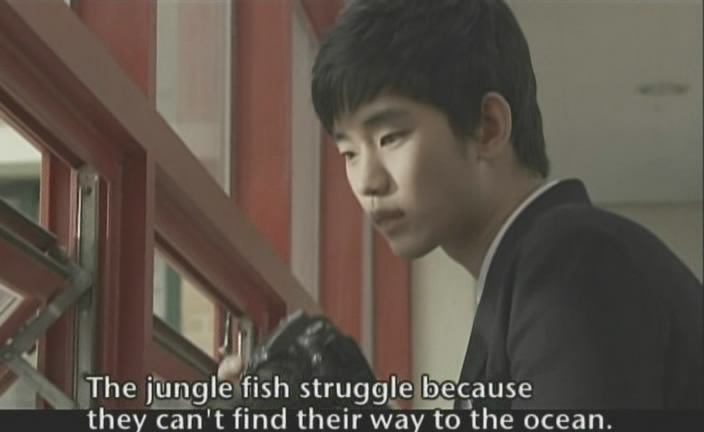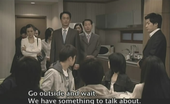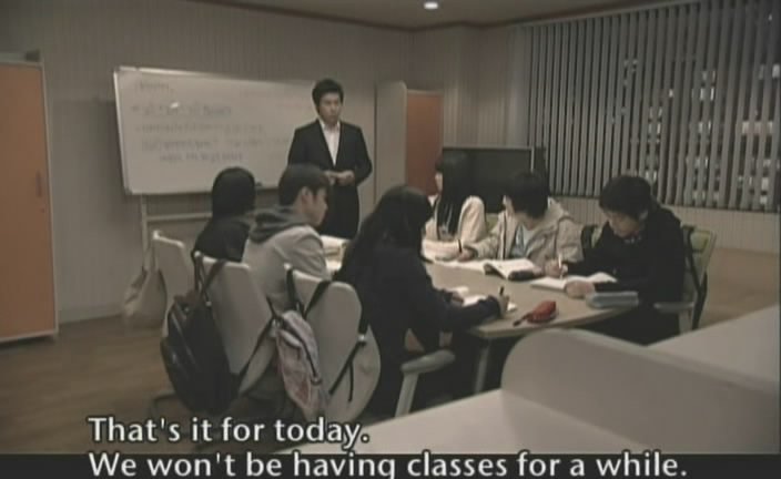 The class president is talking to Jaeta. Apparently, as in Japanese schools, students in at least some Korean schools are required to do the cleaning.
