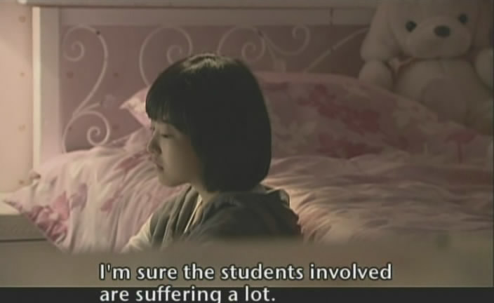 Jaeta and the class president are doing some good investigative work of their own. They have a picture the girl took, and Jaeta is trying to find the room it was taken from, hoping to get closer to identifying the actual girl who plans to kill herself.
