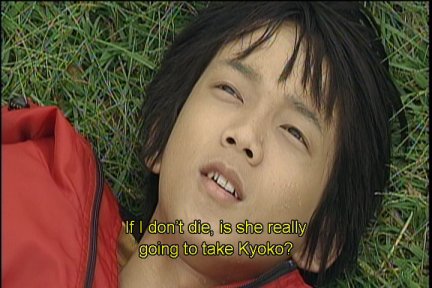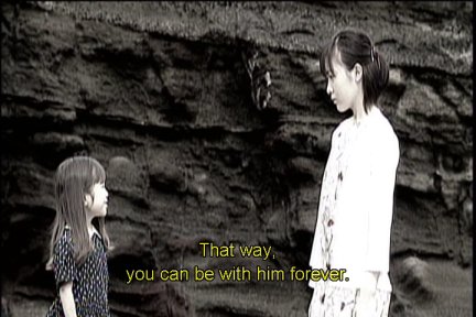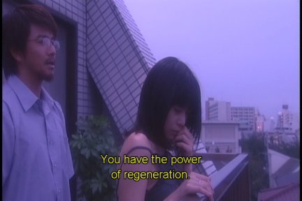 We see Kyoko come out of her body at the end and stand next to the angel of death. Yet we never see the guy come out of his body, which is something I was expecting to happen. Since it didn't, I was starting to wonder if something had gone wrong and another twist was going to be worked into the movie but it wasn't.