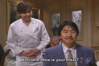 One person comes to the restaurant which Shizuku thinks at first is a famous singer. She goes out to see him and Sakai and Hittori, from Iron Chef, are both eating at the restaurant, which was really neat to have them as walk-ons in the series.