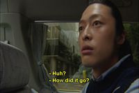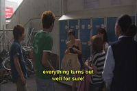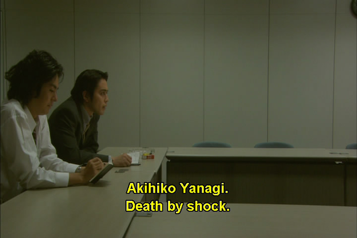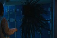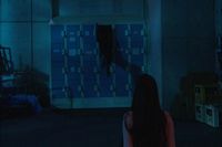 The girl crawls towards then and Rieka sees what happened to the mother. When she comes out of the vision she sees the guy being pulled into the locker.