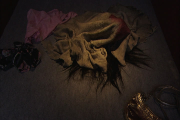 Yuna, the other girl, disappears while trying on clothes and all that Reika sees is something moving under a dirty something or other.