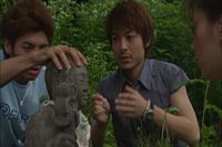 One of the guys is freaking out. The guy also admits he broke the head off the guardian statue.