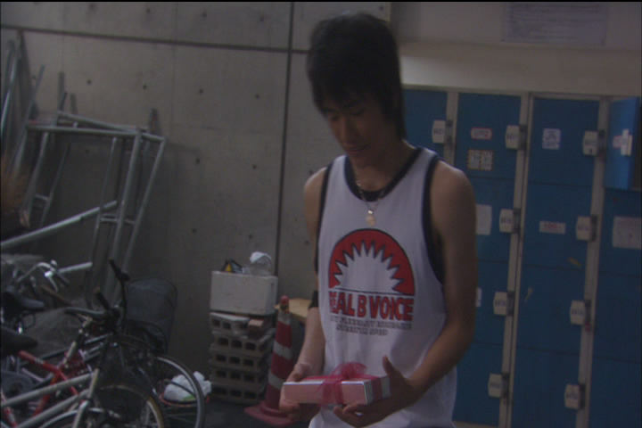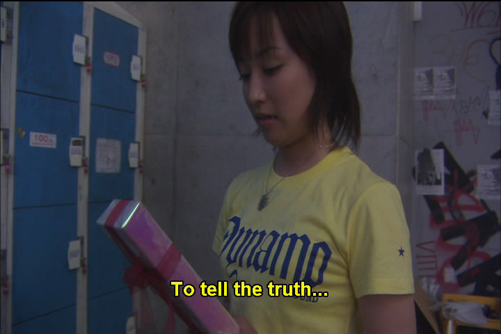 Shiori has followed them to the locker. She has a crush on the guy but the guy has no clue that she does.