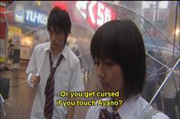 The ending scene from the first movie is repeated where Reika gives Ayano the key to the locker.