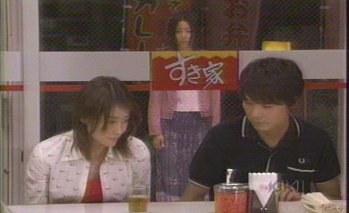 Once again, following the tried-and-true principles of unlawful entry, Mikan returns to Ryousuke's restaurant. Unknown to her, she's been followed by Midorikawa. Ryousuke and Ai are eating at a fancy restaurant and she keeps asking him questions about his ex-fiancee. Shimura calls her on her cell phone; he's also at the restaurant (with a woman, of course) and can see her and Ryousuke.