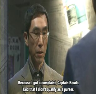 It appears that Capt. Koda has caused other people problems, too. They have a good talk. When Shinkai leaves the restroom he runs into Ogawa who has her own little putdown of him ready.