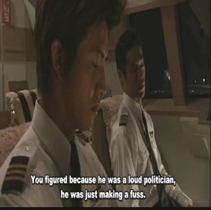 The politician panics and wants the plane to turn around and land. Koda asks input from Shinkai and two others, then decides against Shinkai's advice to make an emergency landing.