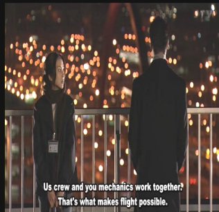 Ogawa gets off the plane after talking to Shinkai and the other pilot sort of compliments him on how he handled things.