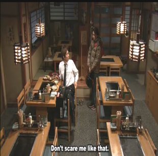 Later Ogawa sees that Shinkai is at the restaurant so she decides to stop there also.