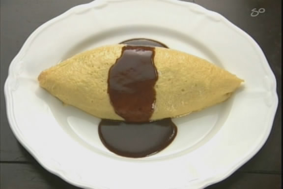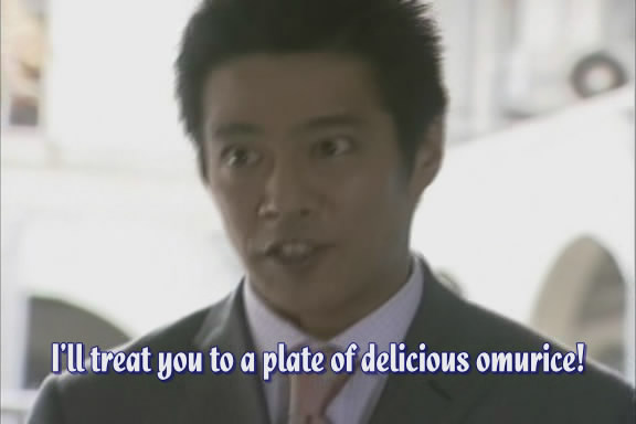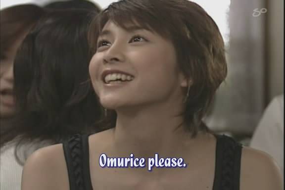 She places her order. Omurice is a rice omelete with ketchup in it.
