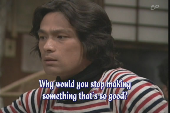 Kennichiro is dumb as a brick. Yujiro has just asked him how he plans to start over. He thinks he's going to take over the store since he is the eldest son.