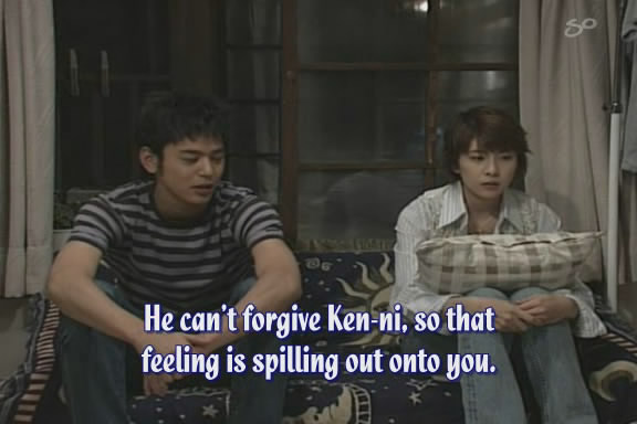 The brothers disagree about whether she should stay or not. Finally Yujiro tells her to get out.