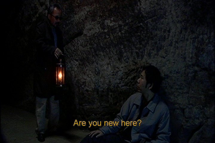 While he's resting some guy with a lantern comes along. He knows the guy. The guy says that all populated cities have vast underground areas like Tokyo. (The guy is the one who killed himself in the subway).