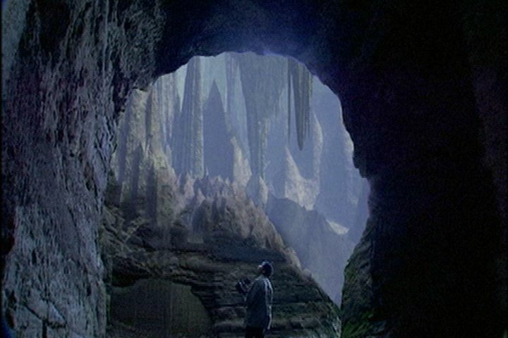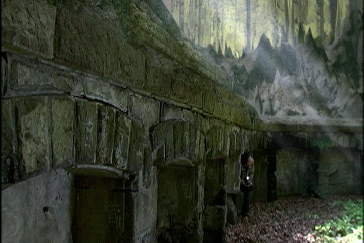 He finds some underground ruins. (And he's been exploring for how many hours? And hasn't eaten anything, drunk anything, or gone to the restroom?) Also, he is UNDERGROUND. In a CHAMBER. WHERE IS THE LIGHT COMING FROM???? How long does his camcorder battery last?