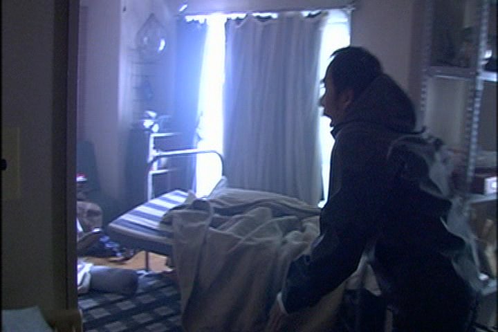When he gets home there's a strange woman in the stairwell. When he gets into the apartment he finds that the girl is having seizures of some kind. So he tries to give her some milk to drink. (Now there's a new solution for someone having seizures; give them milk.) He also finds something odd has happened to his video equipment for a short time.