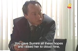 Sam tells Sumire that they should break up. He tells her that his wife is pregnant. Of course he's lying like a dog.