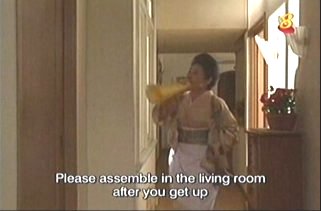 Nakata dresses up to stand outside the room and try and get people to come inside.