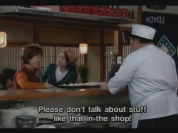 Things get wild. Makoto shows up, and Aunty shows up, and then the guy who works at the soba shop also shows up. Shiro wants to leave, but he opens the door and Kei and her boyfriend are right there.