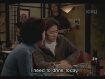 Shiro and Tamako are at a restaurant and Shiro is drinking a lot. Akira's boyfriend works at the same restaurant.