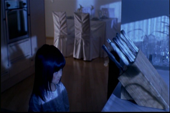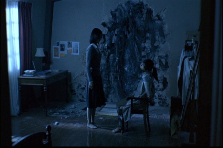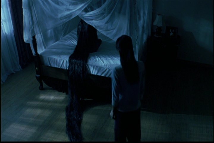 Later, Ji-won is in her bedroom and sees in the mirror a woman playing the piano, but the woman actually isn't there. The little girl goes completely bonkers.