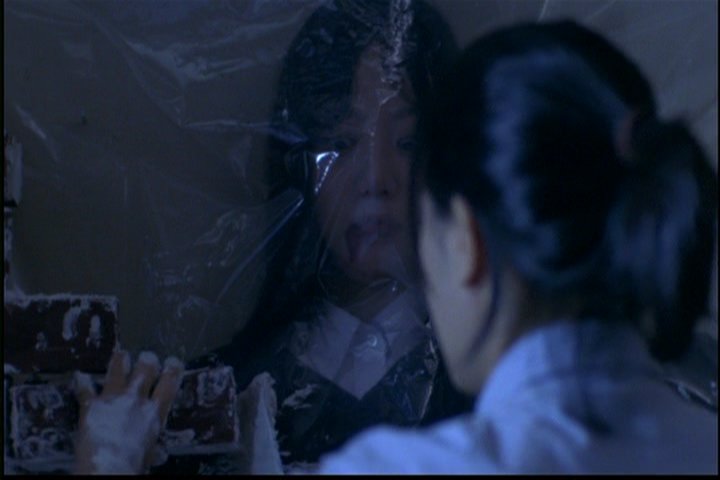 Jin-hee is not quite dead yet. The wife has encased her in plastic, but she gets up and tries to attack the wife again. The woman takes a statue and hits Jin-hee with it.