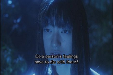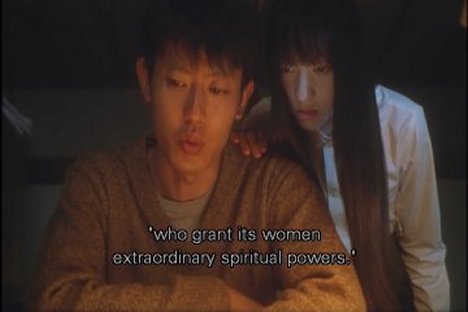 On the negative side there is some extremely annoying camera work. The actress playing Sayori's mother isn't convincing; she's way too over-the-top crazy to be believable. There's also no explanation for why the dead coming back to life in this situation would be a problem. It's just along the lines of "well, that can't be allowed." We learn later one possible answer, but that depends on whether or not Sayori was typical of the dead-brought-back-to-life or whether she was as psycho as he mother.
