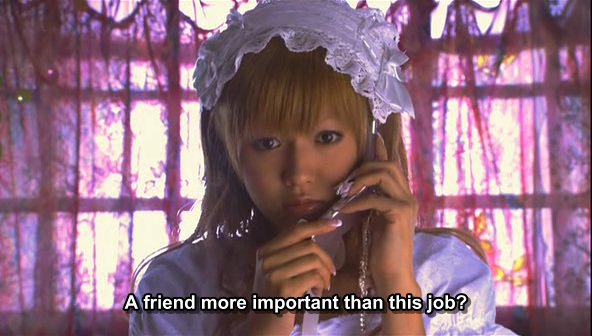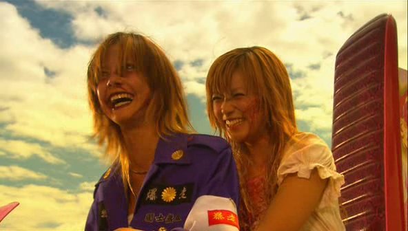 The Kamikaze Girls story differs from the movie in a number of ways. First, the store owner of the lolita clothing store is younger than in the movie and is drawn as being quite handsome. Secondly, the pachinko-parlor guy who defends Momoko and Ichigo does not have a long, pointed growth of hair; hes younger and has normal hair.