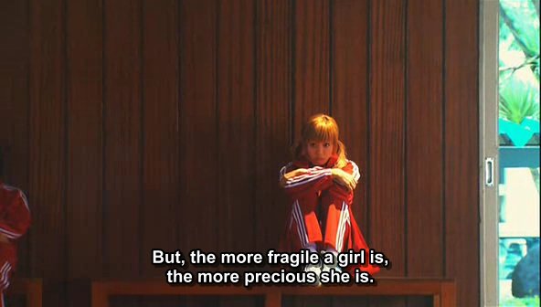 There's also some differences in the ending of the story vs. the ending of the movie; nothing incredibly major, but still some little distances. Also, no scene of Momoko riding a motobike and hitting a truck (thank goodness.)