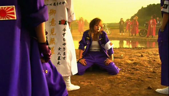 When Momoko goes to help Ichigo when the gang is beating up on her she steals a bike. Theres no grandmother and no old, special bike. Theres also no accident with a truck on the way to the fight. Momoko joins the fight, but theres no story about her being the daughter of a long-lost bike-gang leader.