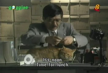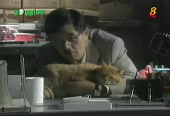 The chief, as usual, is petting his cat.