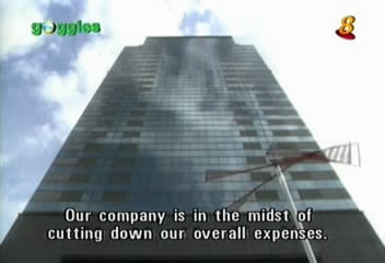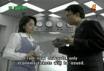 A guy that was going on a company trip gets an economic ticket instead of a first-class ticket, to help cut expenses. Also, no more taxis; they have to use the public bus service.