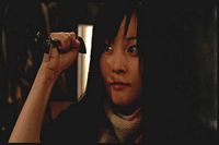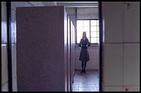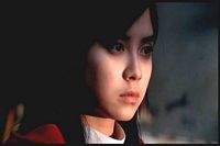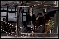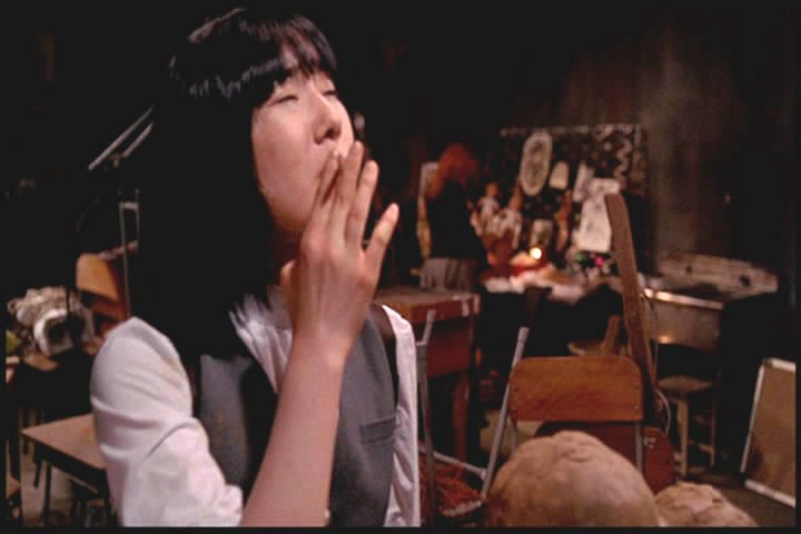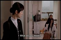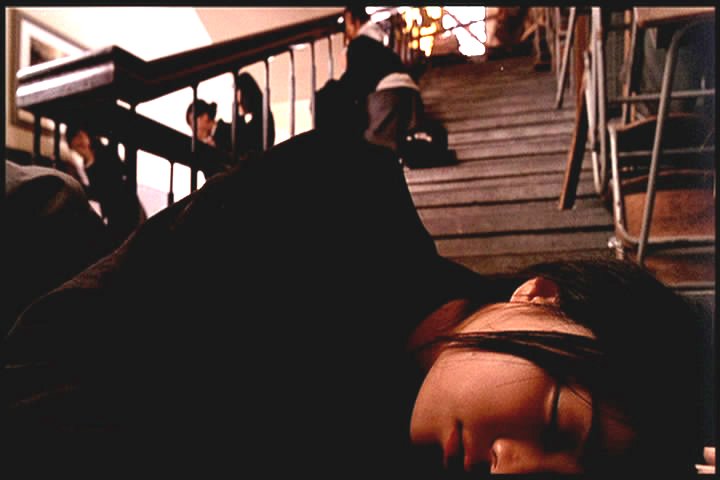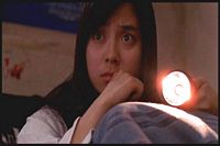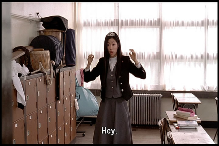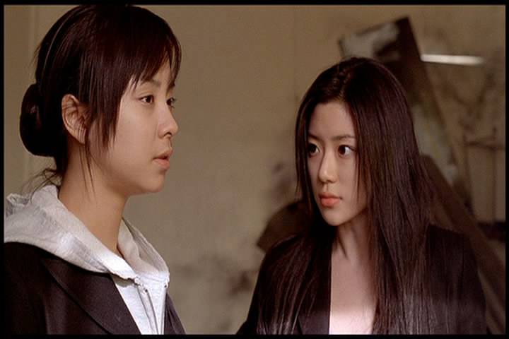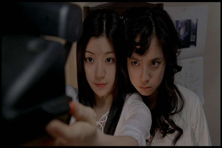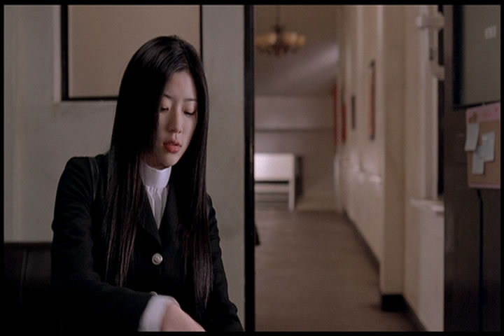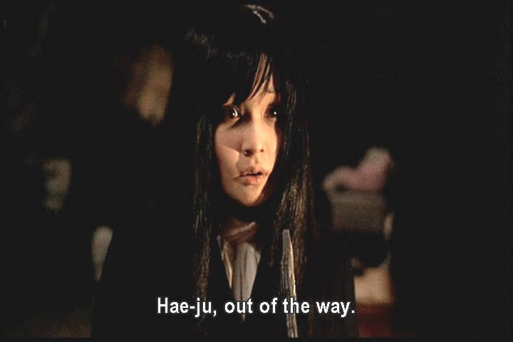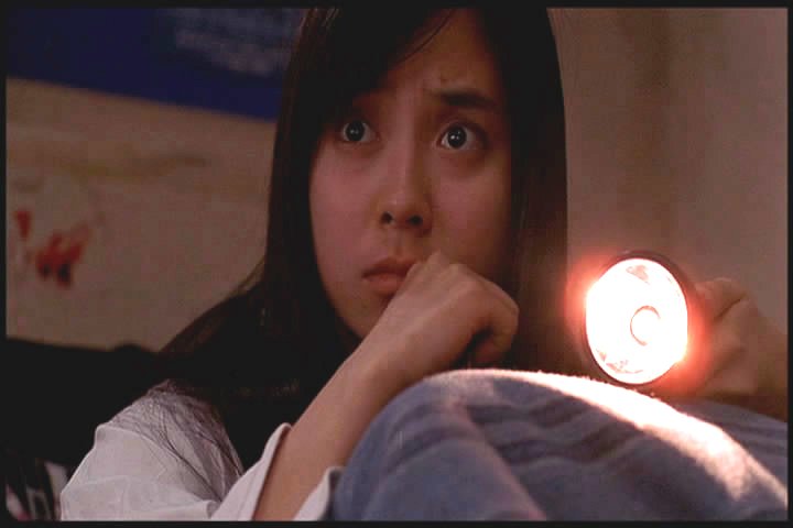 Other strange things happen in the school building. In the dorm the lights go out. Hae-ju is in another room and is coloring her hair and talking to the spirit, although only she can see it.