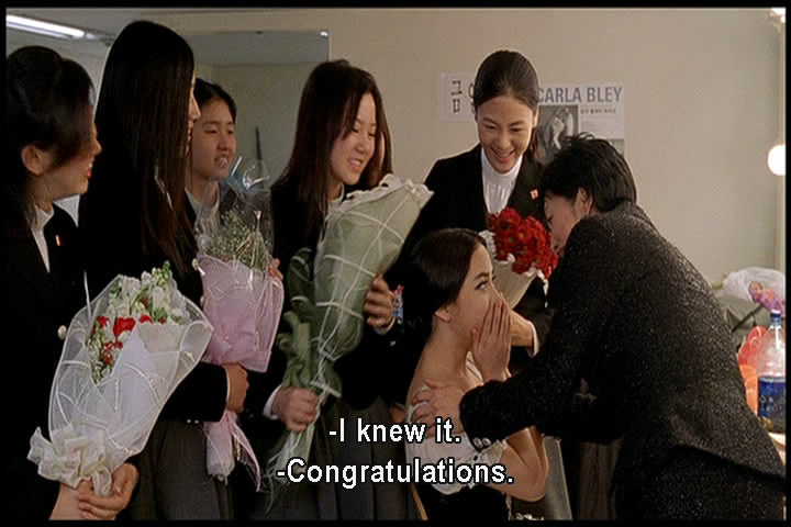 Jin-song is told by a counselor (?) that, basically, she's not good enough to win the competition.
