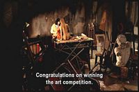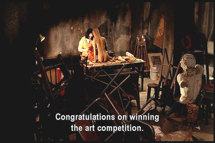 Yoon-ji is doing her sculpture in a different room from the other students. ,P>