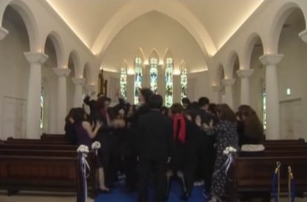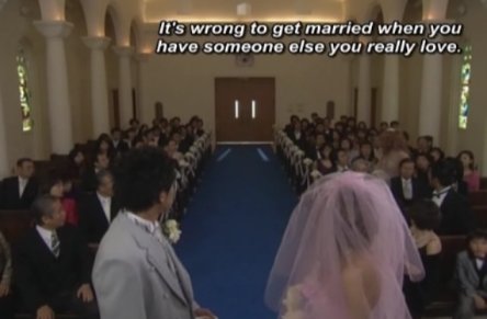 When it gets to the part about asking if anyone has any objections, Reiko stands up and objects. All the workers from the place object (minus Sosuke), and the "president" and all the helpers object.
