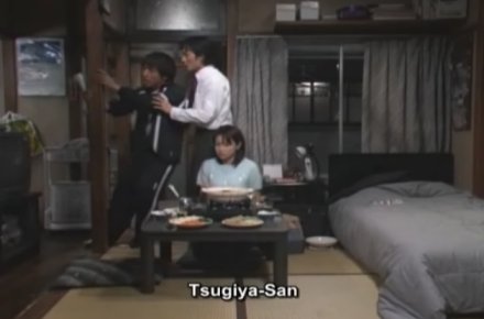 Reiko chan leaves and Tsubomi and Sasuke are about to start eating when the guy getting the divorce arrives at the apartment totally drunk. He later says he plans to move in with Sasuke for a while.