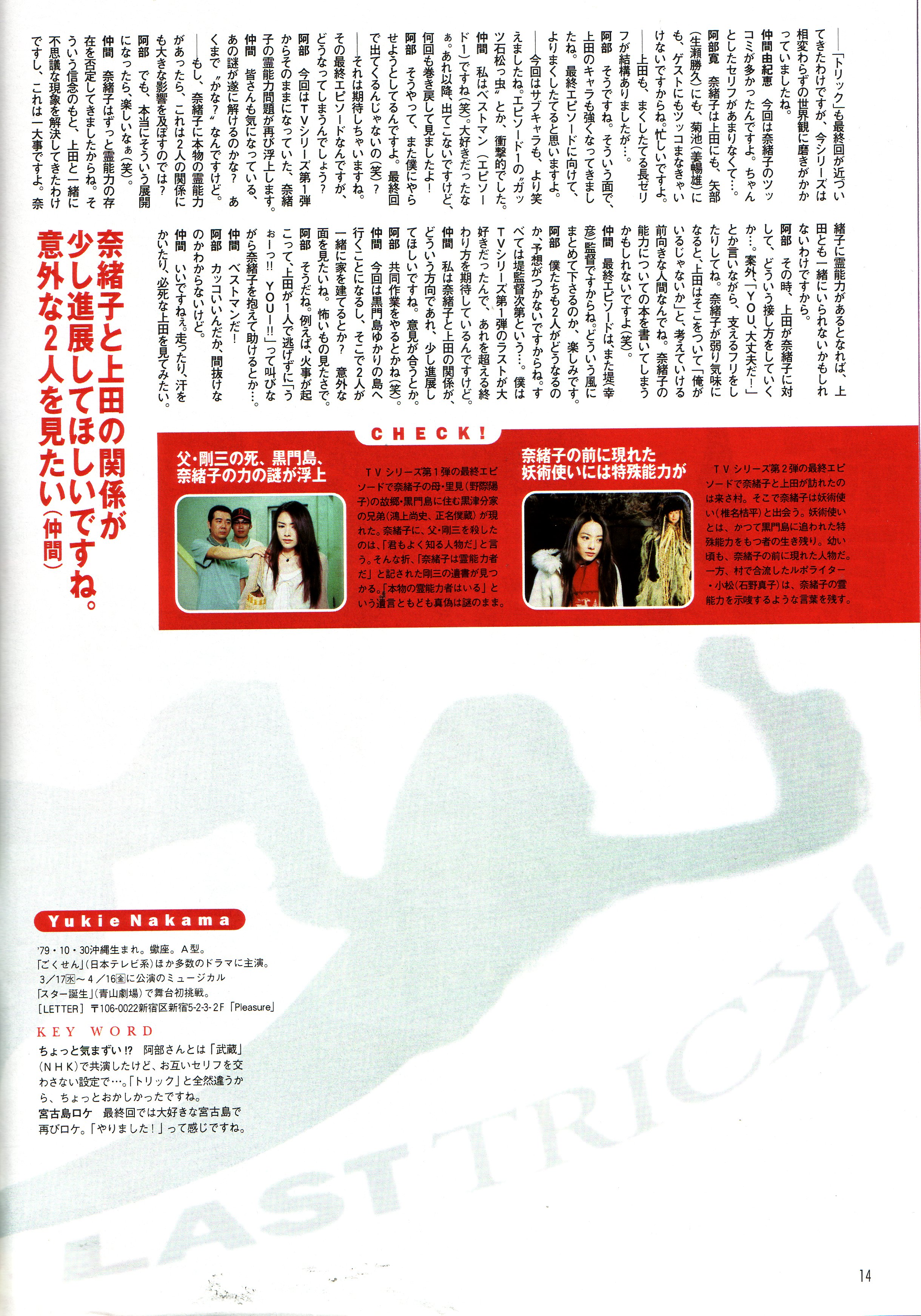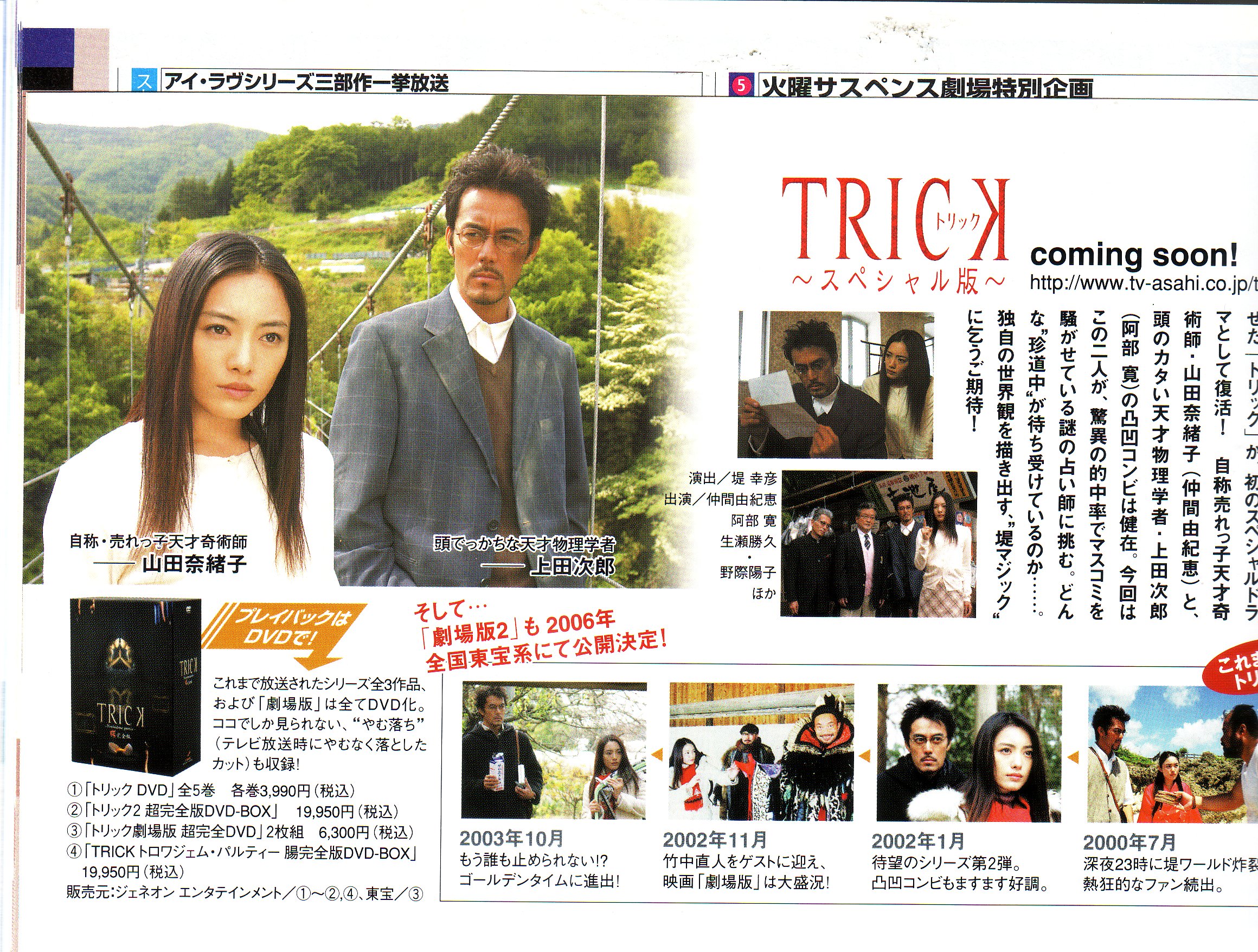 This is an interesting series with Nakama Yukie (Gokusen) playing a woman who is a down-on-her-luck magician. Her father was a very famous magician and debunker of spiritualists, but seems to have been killed by one. Her mother also seems to have considerable powers of her own.