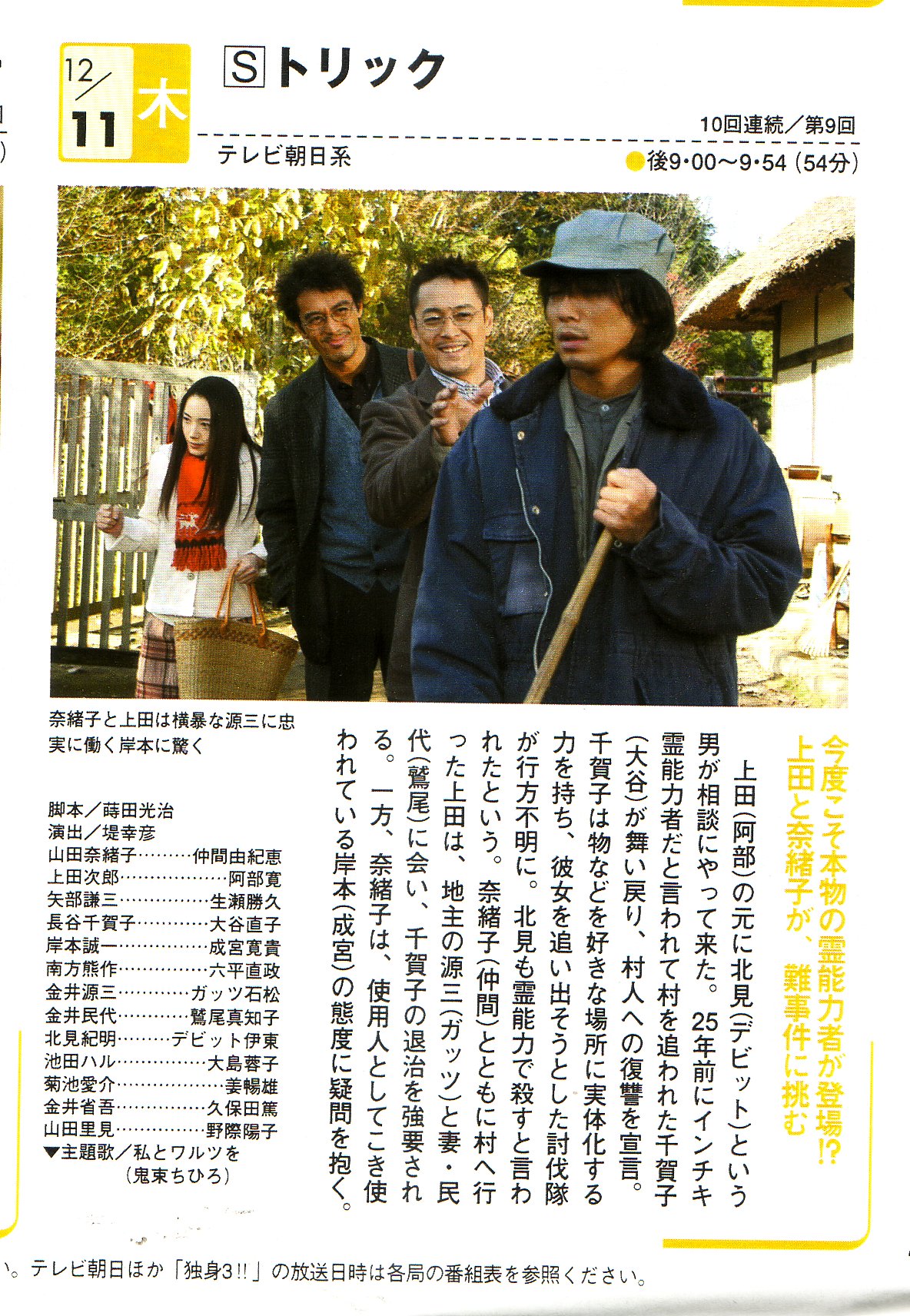 The third series concerns a girl who tells the police she will kill three men with her spiritualist powers and it seems that she does that, but again Ueda and Yamada work to figure out what kinds of tricks she is using and to expose her as a fraud.