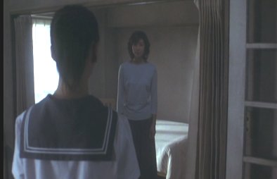 Yoshima seems to have some psychic abilities, especially in pyschometry; she picks up or touches something and can “read” the past of the object. She touches the watertank and sees Mitsuko climbing up it.
