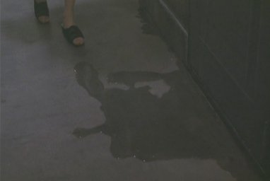 There's standing water and pouring water in the apartment. (The door wasn't locked.)
