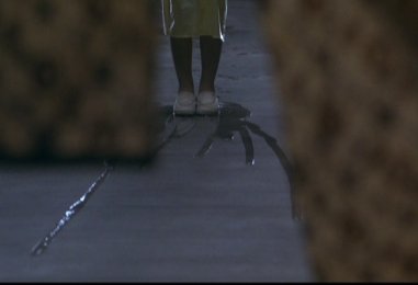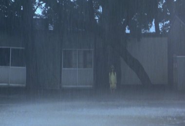 Ikuko is playing in the school and sees the girl with the yellow raincoat, dripping water.