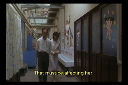 The mother gets called to the school when Ikuko collapses. The principal says the girl has been talking to her self a lot.