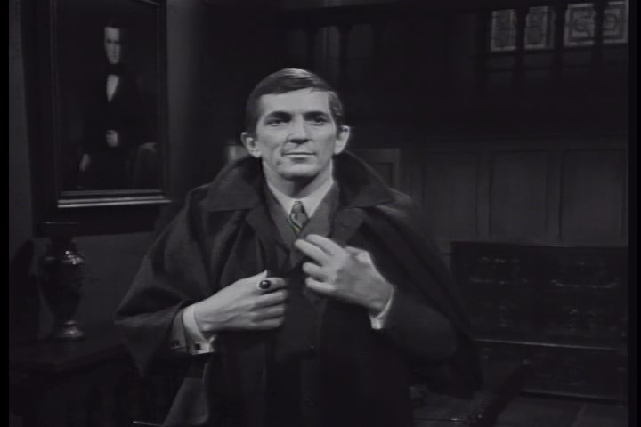 Barnabas then shows up (wearing a hat, which is a rarity.) Barnabas tells them he'd like to move into the Old House. He tells them that he feels he belongs in the Old House. Elizabeth says she believed that Barnabas had died childless but Barnabas says the 'original' Barnabas had actually married and had a child but that he had enemies and apparently made up the story of his death or something like that.