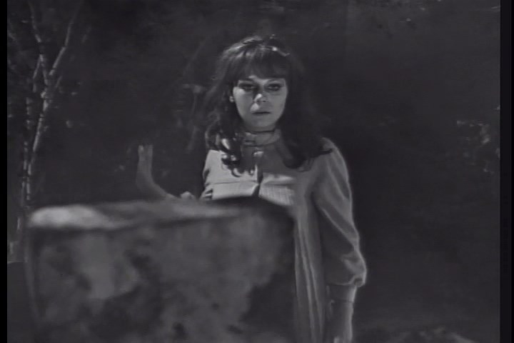 Barnabas wants to know how anyone knew about his being there. Maggie collapses. (There's a funny thing that happens. Vickie arrives and you see her feet and legs. As she moves her feet it's obvious that she's not walking on grass but on some kind of blanket or something that moves. )