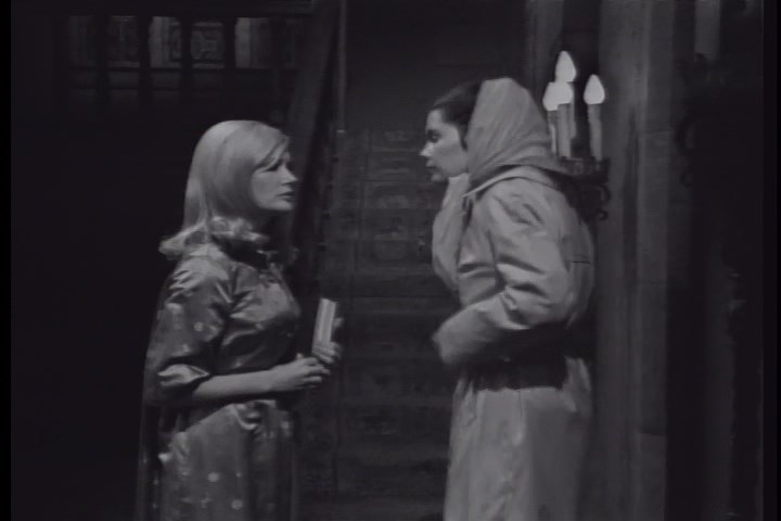 Then he talks about the death of Josette. He really had a great voice for telling a story like he did in this episode. Rosemary goes to bed leaving Victoria and Barnabas alone. Victoria asks him why he described Josette's body as bloodless. He says that's the way the scene was described to him.