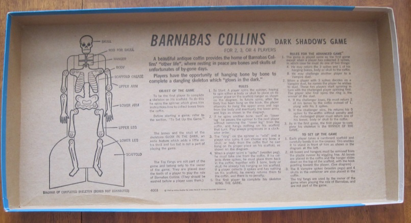 The game is for 2 to 4 players and came out in 1969. There is also a pair of Barnabas fangs in the original game but you almost never find these in the games offered on eBay which is where I got this one. Expect to pay at least $20 for the game although some listings run well over a hundred dollars.