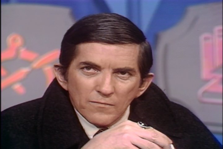 The following week Jonathan Frid appears as a contestant with the 'old-timers.' Jonathan Frid is asked what popular group recorded in he previous year Back in the U.S.S.R. He doesn't know it was the Beatles. Then in a quick-question round he gets a question right about In What Country are the Halls of Montezuma? He also gets right a question about in what country was Che Guevera killed? He also identifies the singers on the stage as Gladys Knight and the Pips. The team he's on loses to the younger generation team.