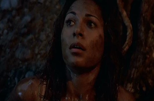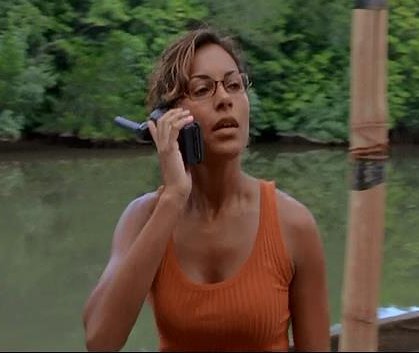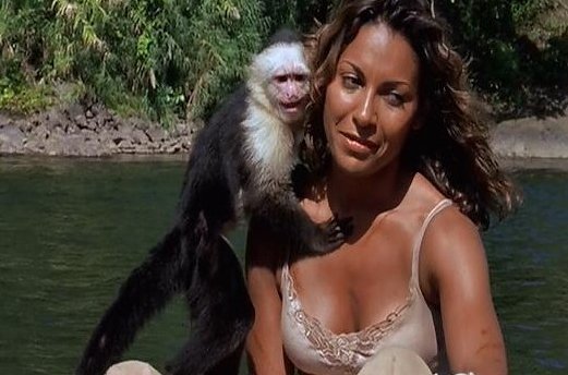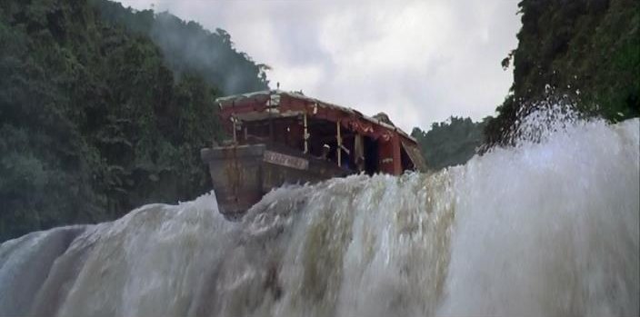 Obviously this is going to be a big snake, jungle nasties type of movie. I'll capture some caps of it and then note what I think about the movie. Scientists, by the way, are in the jungle to find a rare flower that could make a pharmaceutical company rich. Oh, one other thing. There are headhunters also. The boat they end up using is pretty beat-up.